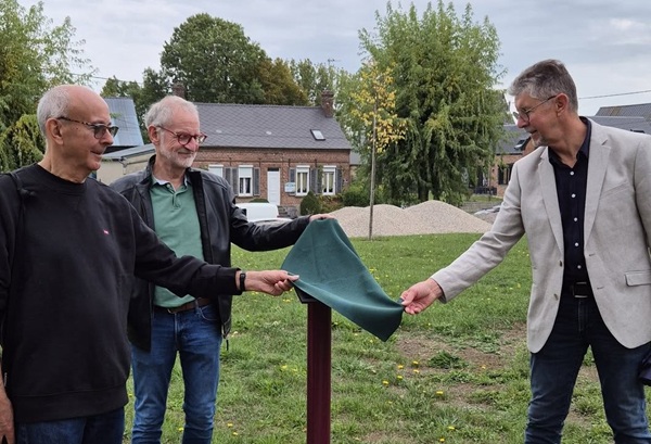 Samedi 20 septembre, profitant des Journées du patrimoine, Dominique LEMAIRE, Président de l'association Histoire locale et Patrimoine, et Jean-Pierre VIEVILLE, Maire de Sains-Richaumont, dévoilaient deux bornes mémorielles rappelant l'arrivée des troupes américaines dans la commune début septembre 1944, prenant appui sur deux photos d'époque.